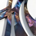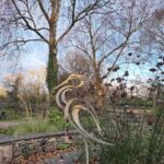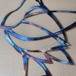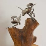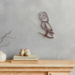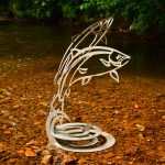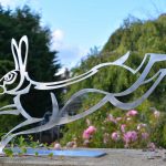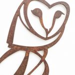 Contemporary metal sculpture and design. Tempered steel fish wall hanging Rusted Steel Barn Owl Wall Hanging ‘Running Hare’, stainless steel garden sculpture Up-cycled cutlery sculpture Up-cycled cutlery bird in bird bath